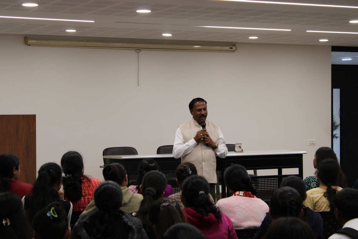 The session focused on introducing students to a wide range of examinations including UPSC, GPSC, SSC, Banking Services, Railway Recruitment, Defence Services, and other State-level recruitment examinations. Detailed information was shared regarding eligibility criteria, examination patterns, syllabus structure, preparation strategies, and career prospects associated with these examinations.