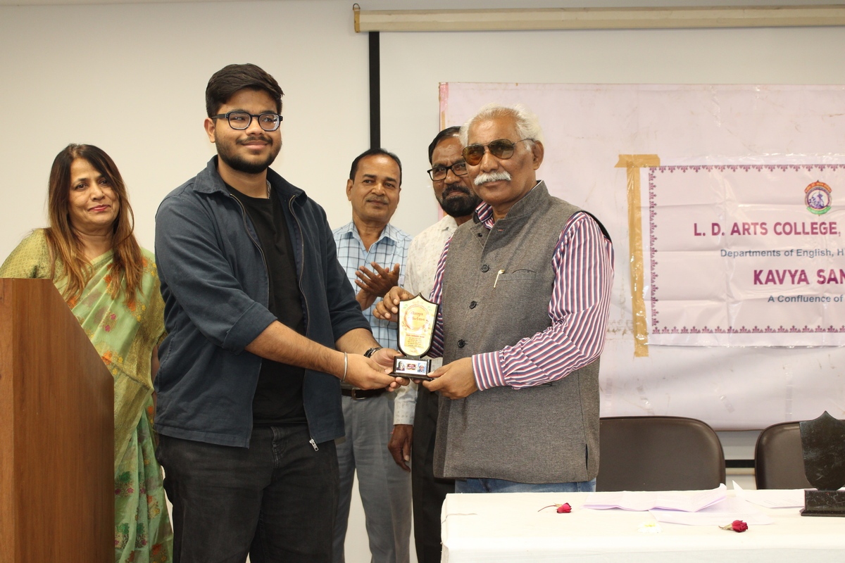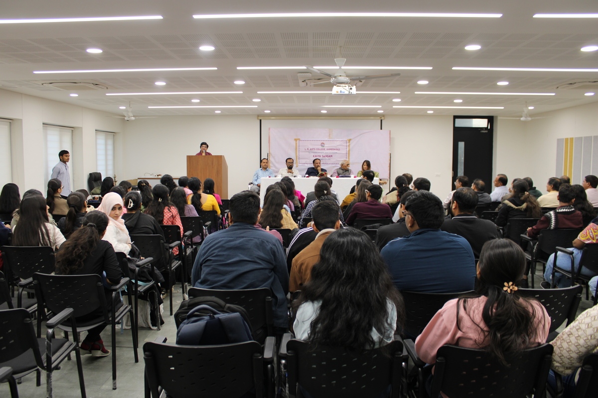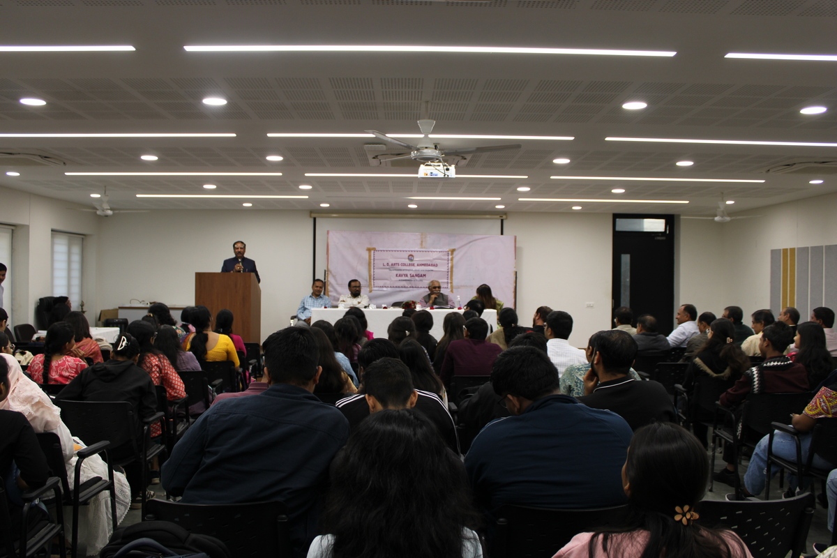 Kavya Sangam: A Confluence of Poetry was successfully organised on 28 January 2026 by the Departments of English, Hindi, and Gujarati at L. D. Arts College. The event was conceived as a multilingual literary programme aimed at celebrating poetry as a living and evolving form of expression. The programme was presided over by Dr. Mahipatsinh Chavda, Principal of L. D. Arts College.