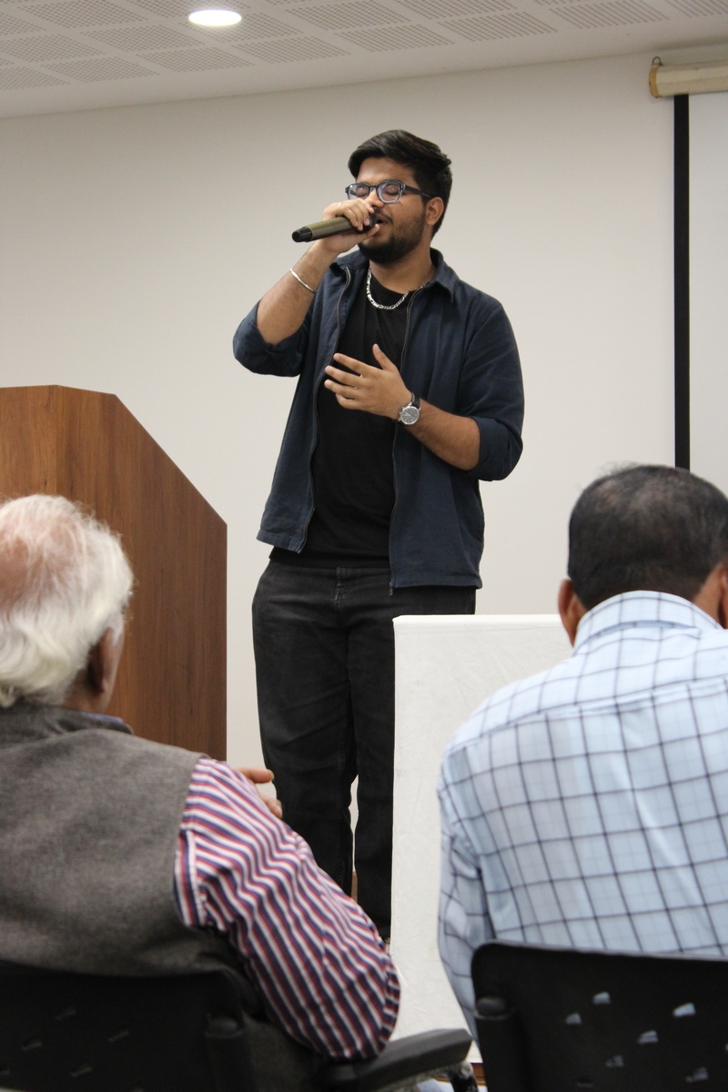 The Guest of Honour, Shri Pratapsinh Dabhi “Hakal”, a retired Forest Officer and an accomplished poet, graced the occasion with his presence. A poet of rich sensibility, he has published several collections of poetry in both Gujarati and Hindi. Deeply rooted in his soil, environment, and natural surroundings, his poetic vision reflects an intimate engagement with nature, memory, and lived experience, making his participation especially meaningful to the spirit of the event.